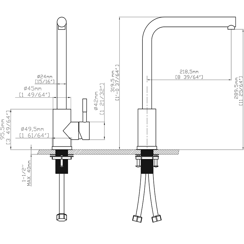 – 2 đường nước : nóng và lạnh